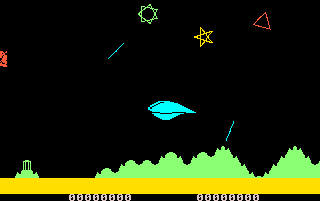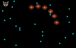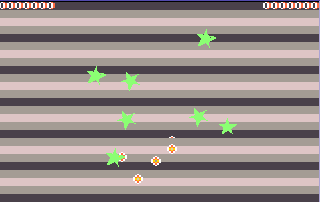 Shoot-em-up. Includes some simple classical music. Use joystick in Port 2. Shoot the stars when they are