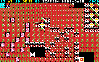 Puzzle game. This is a Boulderdash rip-off for the C64 with tricky puzzles. Use function keys on the menu
