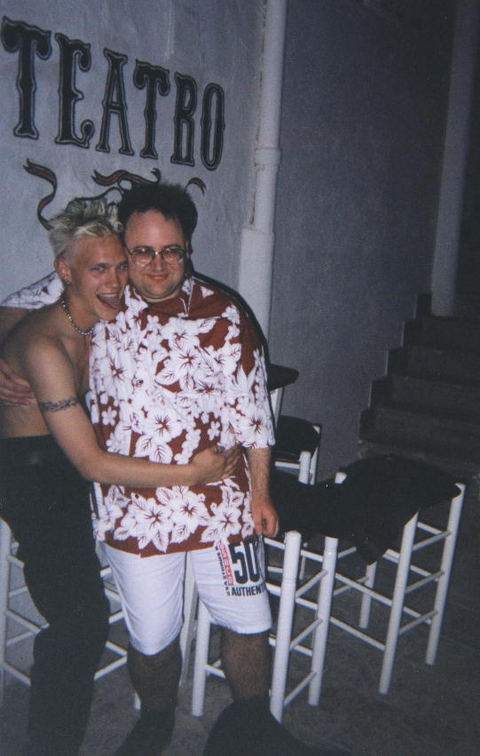 NightlifeThere are one or two pubs and restaurants on the island. Our reps were ubiquitous, and Andrew seemed to have good reason to smile ;-) The old town has some rather nice restaurants, in a quiet setting. One of the bars had what I consider a good reason to visit it, in the form of a 22 year old former Swedish judo champion by the name of Johan. He seemed to be enjoying his first week as bar-staff! I seem to be having a bad chin day in that piccy though :-( |