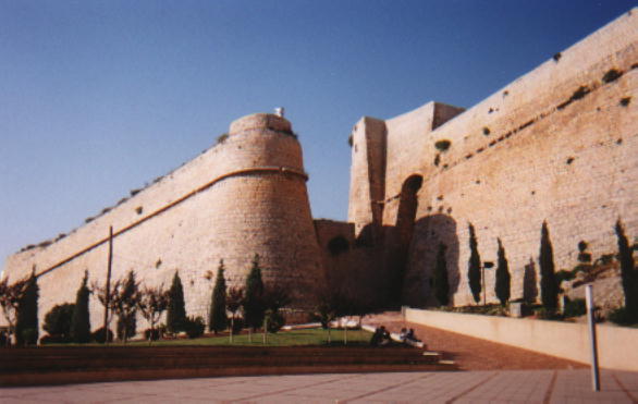 Ibiza TownThe old town is basically a castle - it is surrounded by thick fortified walls. The port is still important to Navy ships and pleasure yachts. |