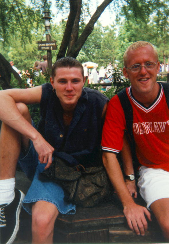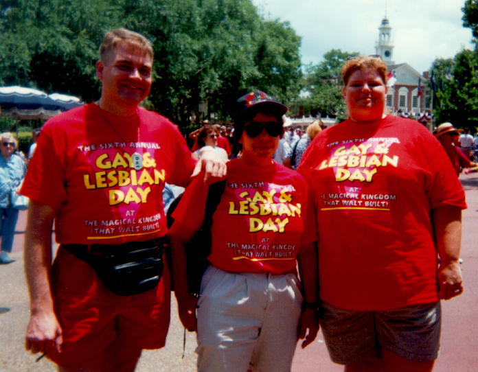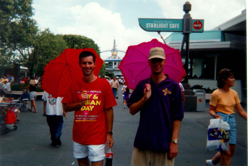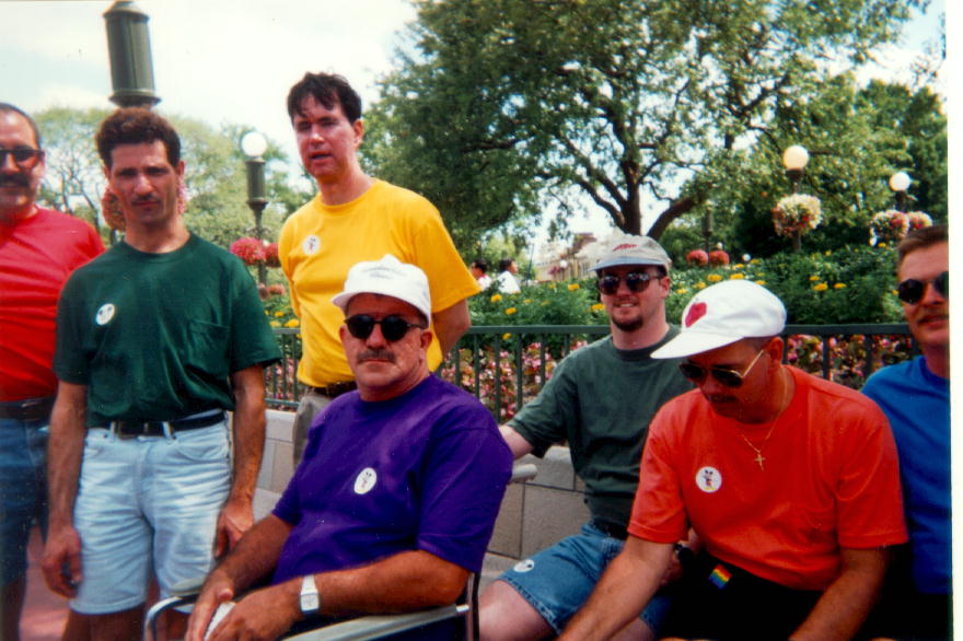 The Magic KingdomThe first saturday in June is an unofficial gay day at the Magic Kingdom, Disney World, Orlando, Florida, USA. June 1st 1996 was the 6th annual event, and there were lots of people out there having a good time. Unfortunately for me, most of them were couples :-( The lovely Brad from Rhode Island (6th picture down) didn't fall into this category but I managed to lose track of him courtesy of the disney transport system and the vast distances involved in moving around the resort. Who knows what might have been, had I been extremely lucky and he suddenly lost all his senses? I think the guy on the left of the first piccie is Doug Swallow, the organiser of the event, but I may be wrong and he might be just out of shot on the right. It all seems to blur in my mind :-) More text to follow in a couple of days... |