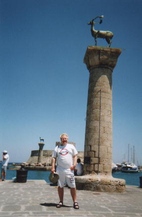 RhodesWhen I lived in New Zealand, I heard that the mediterranean would soon disappear under a tide of sludge and algae. So I thought I would have to visit it quickly! But it ended up taking several years before I actually went to Greece. Fortunately, the sea was still there, and in fact was beautiful and clear (if a little salty). Tourists come here in their national colours - the English and Danish are stripey red and white, the Germans are brown, and by rights the Scots should start off blue and white :-). Some people are being a little more sensible in their exposure to the sun, but they seem to be in a minority. I wore a hat, t-shirt and sunglasses even while I was swimming, so I came back without any burns. Ironically I later went out in London and got crisped :-) |
