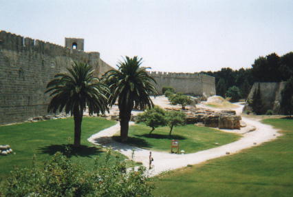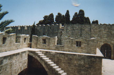 Rhodes CastleThe old town is basically a castle - it is surrounded by fortified walls, with mediaeval knights' Inns located in the middle near the keep (the Palace of the Grand Masters of the Knights of St. John), which is now a museum. |