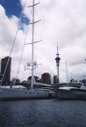 AucklandThe city of sails was hosting the Louis Vuitton cup, the precursor to the America's cup. This is the cup run to decide which country gets to get beaten by New Zealand in the main event. As it happened, Prada from Italy won. But Black Magic beat them 5-0 in the cup itself later this year. The "Cup Village" area is a hive of activity; it seems most New Zealanders have visited it or intend to do so, if the polls are to be believed. The café food available now is a far cry from the traditional tea-house we used to have. Hyperion is rumoured to be Microsoft billionaire Paul Allen's boat. Not a bad bit of kit, but you'd expect that when the parking space alone costs NZ$5000 per day. It's a long way down at the Sky Tower. Forget people - those dots beneath my feet are cars, and the thin dashed line between my shoes is the centre line for a road. Diva's bar boasts at least one of Auckland's cuties. Auckland's bars may have had only a couple of dozen people in them the night I was there, but one smiling one is enough :-) Obviously I don't include straight pubs in this count. |