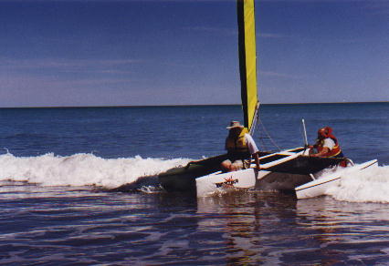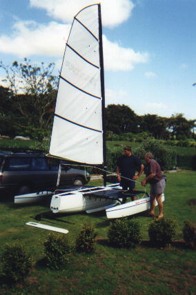 BazookaThis is Dad's great hope for the sailing community. It's a two person sailing boat that folds up and fits on the roof-rack of a car. You can fit two of them on the roof-rack if it is strong. He is building them by hand and selling them, but would like to partner with a manufacturer to produce them in bigger numbers. Here is the brochure: And here is a picture of me sailing in it for the first time, doing an impression of a figurehead on the prow. I let Dad do the steering. |