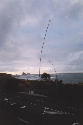 New PlymouthThe capital of Taranaki has been rejuvenated by the energy industry, which complements its recently upgraded deep-water port and the traditional farming services (yes, there are still tractor showrooms there). Paritutu and the power station chimney are the symbols of New Plymouth. The beaches are black sand (titanomagnetite), as in most of Taranaki. Pukekura park is quite pretty, containing a rather large living decorated Christmas tree at the time, as well as the usual ferns and ducks, and the Brooklands Bowl sometimes plays host to David Bowie and other music acts. There are some nice murals around the town, and the cafes seemed quite relaxing. The "Wind Wand" seems like an odd idea - the council has newly erected a 45 metre pole that sways in the breeze. |