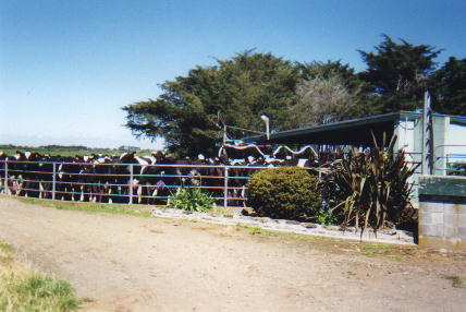 TaranakiNow that's what a mountain should look like! Mount Taranaki / Egmont is famed for its ability to completely disappear under clouds when tourists come by, but looks gorgeous when it does come out. This area has been my family's home since the 1920s (long after the controversial 1860s), and there's quite a sizeable patch of it under my uncles' and cousins' cows. The mountain itself is a national park, and has a Maori legend attached to it. Basically it used to live with the other mountains in the centre of the island, but it fancied a cute female mountain (Pihanga), and her husband (Mt. Tongariro, also a national park) was not best pleased with this. So he was chased away, carving the Wanganui river valley in the process. Since one day he may return to claim his love, Maori people traditionally did not live on that path (in Stratford for example). When asked why he lived there now, one guy said "Well, we've got cars now - we can get out of the way in time, eh?" This is dairy country, and the lush green grass provides good fodder for cows; as opposed to the UK where they feed them on minced up diseased animal brains, or France where they feed them on processed sewage. Unfortunately the hole in the ozone layer has led to some Freisians getting sunburn on their white patches. Let's hope that doesn't get any worse - burn times are very low already. Going through this countryside brought back to me strong memories of belonging - the boxthorn hedges, Friesian cows, the narrow-gauge freight trunk line, #8 wire fences, small gullies with gorse, windbreaks around a farmhouse and of course the mountain with its clouds. State Highway 3 sometimes has cows on it, on their way to milking, and apparently the road signs for this have sometimes been "enhanced" in the Onaero area. A halo over the cow symbol for example (Holy Cow), or a moon underneath the jumping beast. :-) The bosses of a travel agent chain was astonished when they came to give an award to their Eltham office for selling the most trips to London. The town looked dead and boarded up. "Were they one-way tickets?" they wondered. It seems the farming area itself is still profitable, but centralisation and people's ability to travel to larger, more distant towns for shopping has hurt some rural centres. |