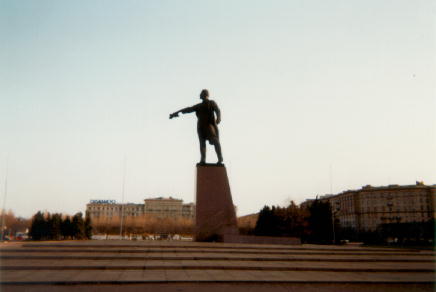 Up the road a bit is a statue of Lenin hailing a taxi.